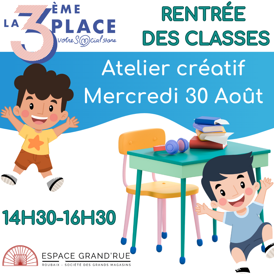 Date 30 Août 2023 Expiré! Heure 2:30 pm - 4:30 pm ATELIER CRÉATIF : Rentrée des classes ATELIER CRÉATIF « Je crée mon super accessoire pour la rentrée » marque page, crayon, règle… Partagez cet événement + Ajouter à mon Agenda Google + iCal / Outlook export